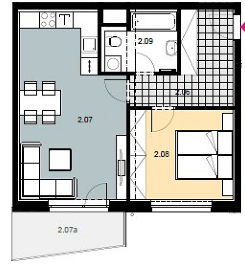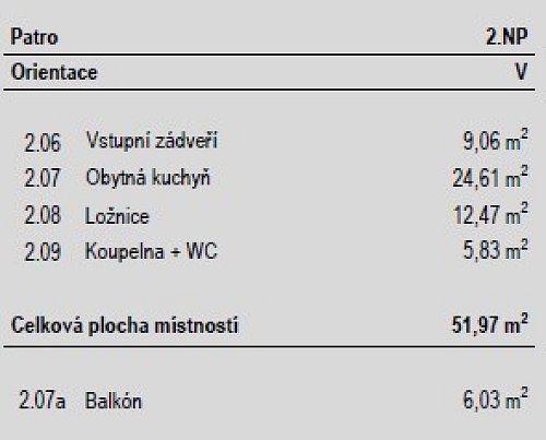 Byt o velikosti 52 m² vás přivítá velkorysým prostorem a teplem od podlahy díky podlahovému vytápění. Srdcem bytu je obývací pokoj s plně vybaveným kuchyňským koutem – lednice, mikrovlnná trouba, sklokeramická deska, horkovzdušná trouba a myčka na nádobí. Z pokoje vstoupíte na 6m² balkon, kde si odpočinete po náročných dnech.